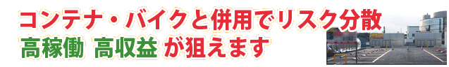 26年間の運営実績があるコンテナ事業やバイクパーキングと併用した運営が出来るため、リスクを分散したコインパーキング経営を行う事が出来ます。